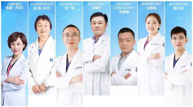 这里有昆山机构院长许娴宁、矫正临床经验55年的邓燕教授、综合修复科主任李广凯 、副主任医师~口腔临床医学博士党勇刚、正畸科医生金淑(韩国)、口腔正畸专业硕士陶文俊、综合修复科医生任晓英。