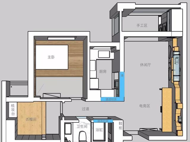 原本尺寸不算充足的卫生间,在尺寸的微调后,也可以完美容纳浴缸、马桶、大台面了。