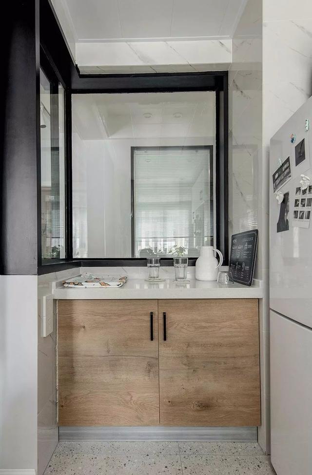 将厨房可改动的墙体改成玻璃材质,可以增强闺蜜间烘焙与烹饪的情趣,也可以让空间显得更加开阔。