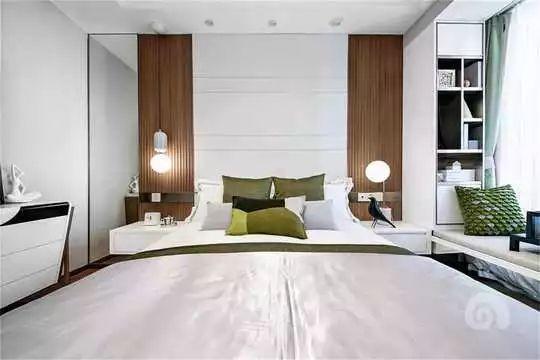 9.床头背景,用些零散的抱枕去搭配它,点缀的绿色很舒服