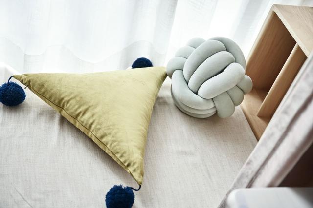 轻薄的纱帘,自然质朴的抱枕、飘窗垫,还有那温度亮度刚好的阳光,这里如此静谧美好。