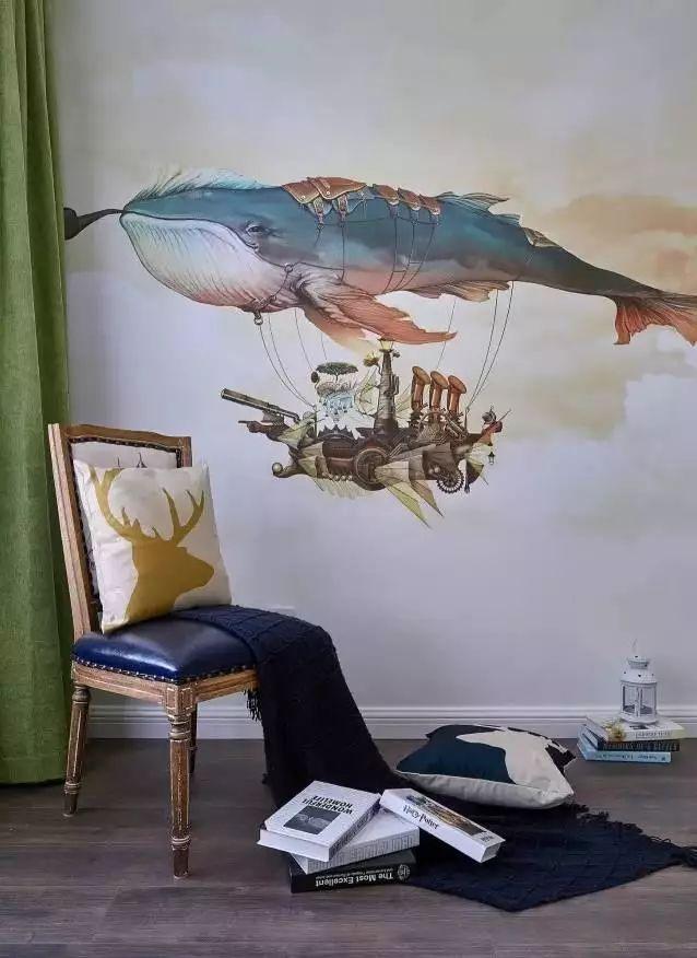 设计师为了满足孩子的动画梦,特意设计了一面墙绘,奇幻的风格更有助于把孩子的探索欲望开发出来。真的很梦幻,我也想要一面这样的墙,你们有人会画吗?