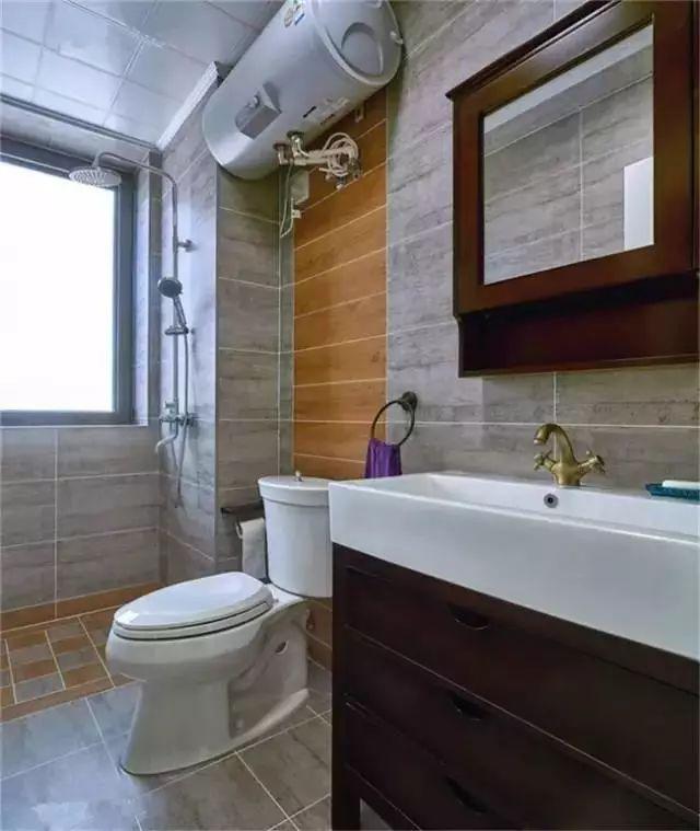 不同色彩的仿木纹砖构成了次卫的整体色彩,与主卫完全是两种风格。