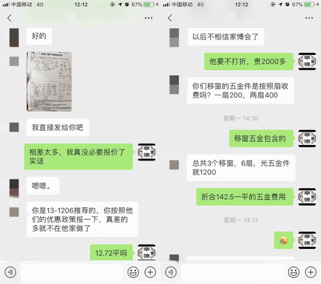 几个商家的价格对比下来,同样的型材,同样的五金,甚至是同样的售后,单价能够相差大几十块钱,甚至几百块钱!
