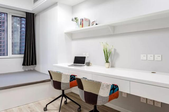 设计师在书房处增添了一个榻榻米床,既可以让屋主工作后有个休憩的地方,还可以增强家里的储物能力,必要时也能作为备用的客房使用。