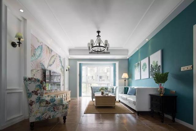 今天说的是一套建筑面积107平米的美式风三居室案例,房子整体的配色非常丰富和多样,但同时又不会让人感觉太过突兀。很喜欢客厅的这款森系的壁纸电视背景墙,花纹好看和整体的风格也非常融洽。