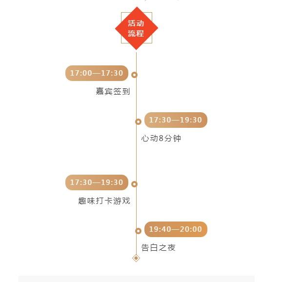 男女嘉宾相对而坐,音乐响起,采用8分钟快速交流方式,交流后双方有意可互换微信或联系方式。8分钟后,女嘉宾不动,男嘉宾顺时针移动3个座位,轮换交流。遇到感觉对的不要犹豫,赶紧抓住今生所爱吧!