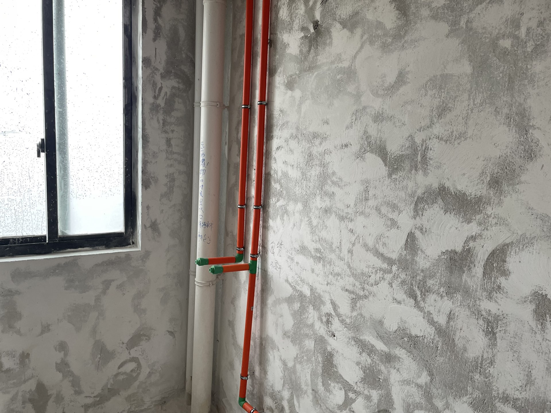 当时谈的地面开槽,因为楼板厚度的问题,只能放弃,全部走大弯,材料进场发生了点插曲,照明线合同全部是2.5平方,结果送了1.5平方的,反馈出来,当天就送了正确的线过来,所以交接中还存在问题,后续改进,话不多说,上图: