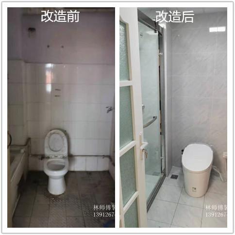 再来看看卫生间,原本的卫生间又黑又脏,浴缸周围都是污垢。而且没有干湿分离。改造后,墙面、地面都是用了浅色的砖,非常干净清爽,浴缸换成了淋浴,打扫卫生起来更方便了。