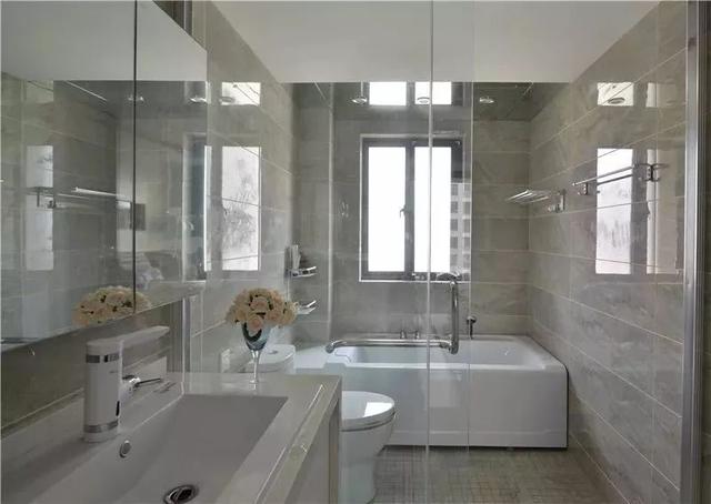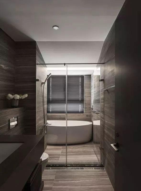 卫生间比较宽敞的,还可以在淋浴房内多装浴缸,玻璃隔断把浴缸、马桶和洗手台都给分开,但看起来还是在同一空间内。