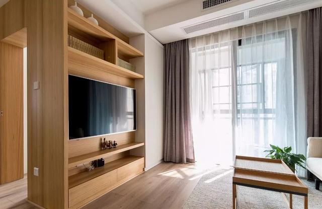 客厅的另一个方向,电视柜整体嵌入墙中。从客厅到餐厅,连贯过,即不违和又大气。