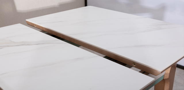 要留意桌腿的材质。一般桌腿有金属和实木这两种,304不锈钢电镀钛金和黑钢,不会掉漆;如果喜欢实木类,可以选择胡桃木,实用性和金属相当。另外,岩板餐桌厚度选择12mm规格较好。