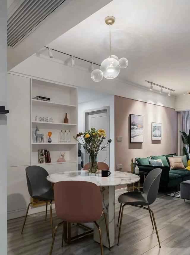 这是一对90后夫妻的小婚房,装了轻奢北欧风,为了效果更好,还加入了墨绿色,带着一些复古的气息,时尚极了。当下年轻人装修新房、婚房,都更容易接受新潮流,也希望装出自己喜欢的、与众不同的效果。