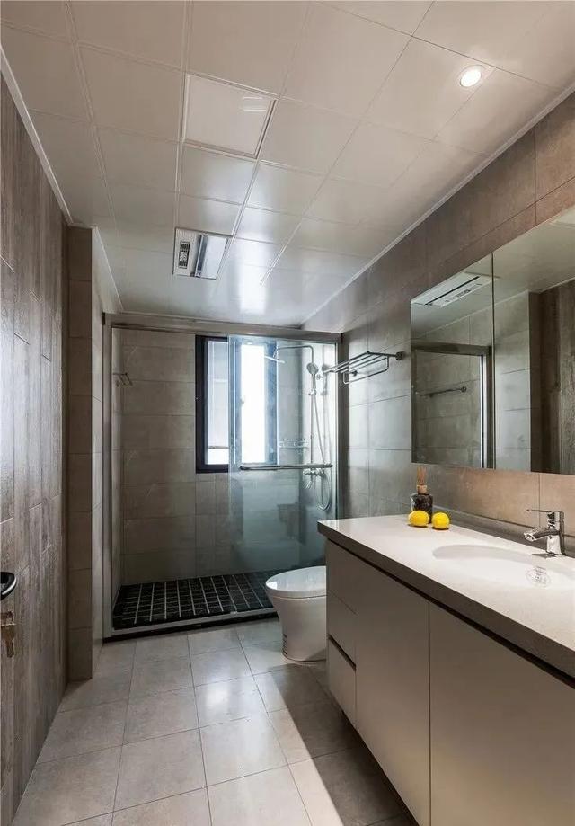 ▲ 卫生间以灰色为主调,通过淋浴间的玻璃隔断进行干湿分离,整体干净利落整洁有序。