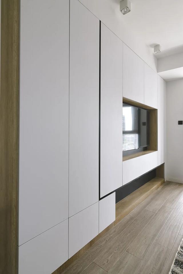 入户玄关处设置了感应灯,通顶柜做满了整面墙,最大化利用空间做收纳。