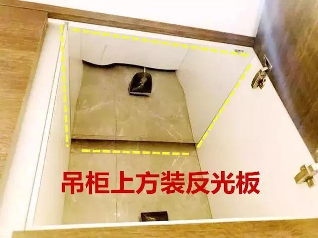 顶部的吊柜建议做好安装一个反光板;为了扩大更多的收纳空间,建议最好还是多做一些吊柜,有人会有疑问,吊柜做那么的高的,拿取东西真的是超级的不方便,太高了里面放置的东西也看不清楚,这里面要建议大家多做吊柜,只需要在吊顶的顶部安装一个反光板就可以很好的解决掉大家的疑虑,里面放置的物品尽收眼底。