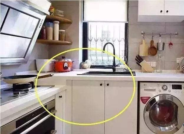 在厨房台面的设计上面一般洗菜区的台面要高于操作炒菜区的台面,这样在弯腰洗菜的时候就不会感觉费力,台面高度在65-90厘米范围内最好。