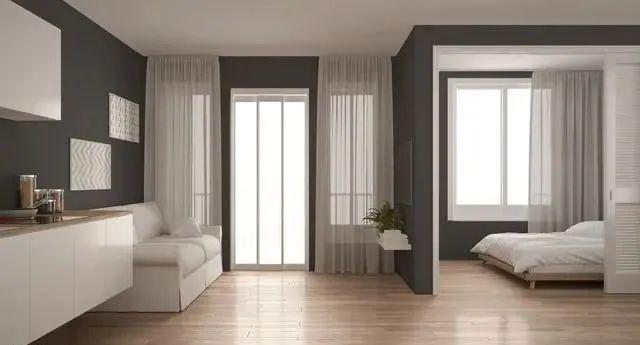 小户型客厅本来就没多大面积,还买了大个茶几、做了顶天立地电视柜、放了拐角沙发等一系列本不该出现在这个环境的家具,最终只会导致客厅看上去更小。