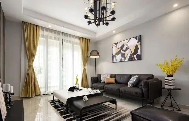 针对这种情况,我们可以采取“以小见大”的设计手法,使用小型沙发、茶几,让客厅拥有更多可支配活动空间,定制隐形柜做家居收纳,也会让整个客厅变得豁然开朗。