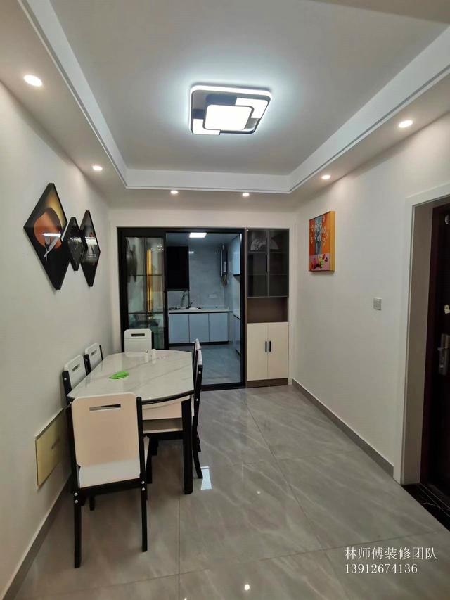 楼上是两房两厅,进门两侧分别是餐厅和客厅。门口做了玄关,避免了进门见厅的尴尬。