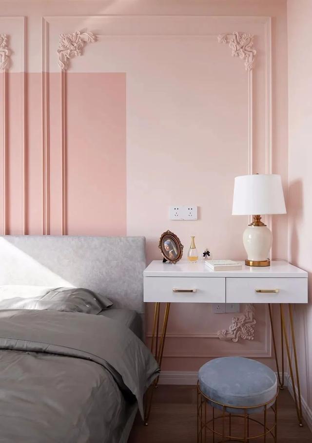 设计老师结合小姐姐的性格特点,在主卧室中选用了少女色系的桃红嫩粉和淡胭脂粉,娇柔可爱,像少女的美梦一样,带去甜蜜和好运。