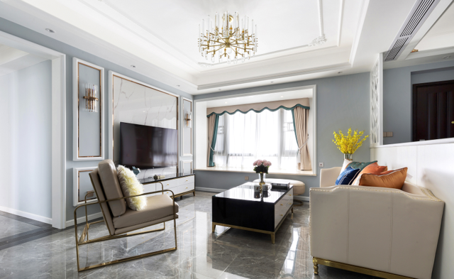 客厅是公共区域,使用的频率比较高,瓷砖耐磨是首要因素,可选择通体抛光砖。通体抛光砖最大的优势就是耐磨指数高。