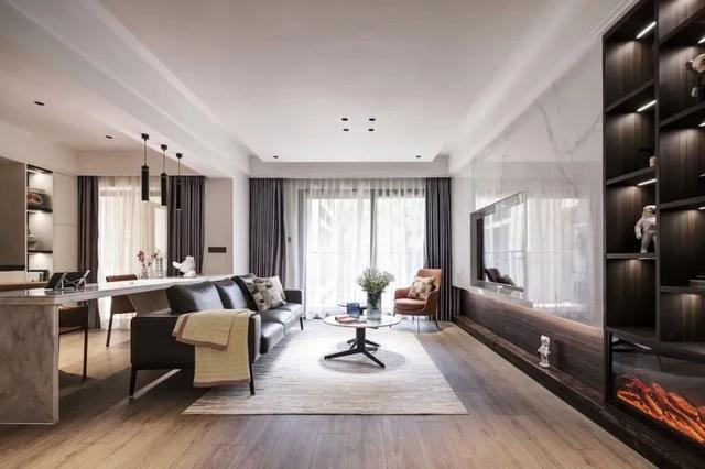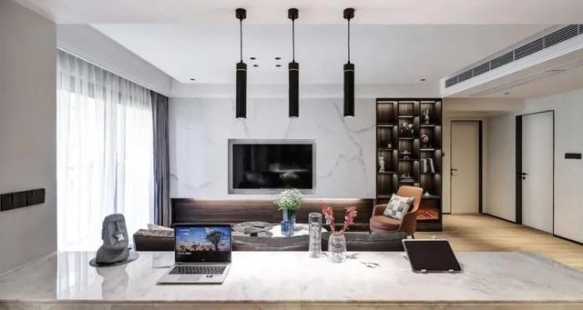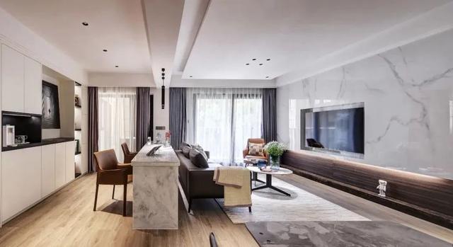 140㎡现代风装修案例,大理石电视墙设计,大气又时尚!