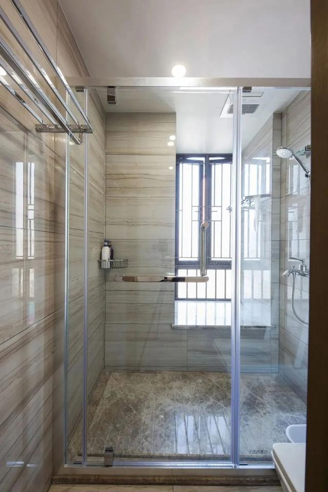 ▲卫生间淋浴房里面的地面做了拉槽处理,整体明亮的采光与良好的通风,提供了一个干净舒适的卫浴空间。