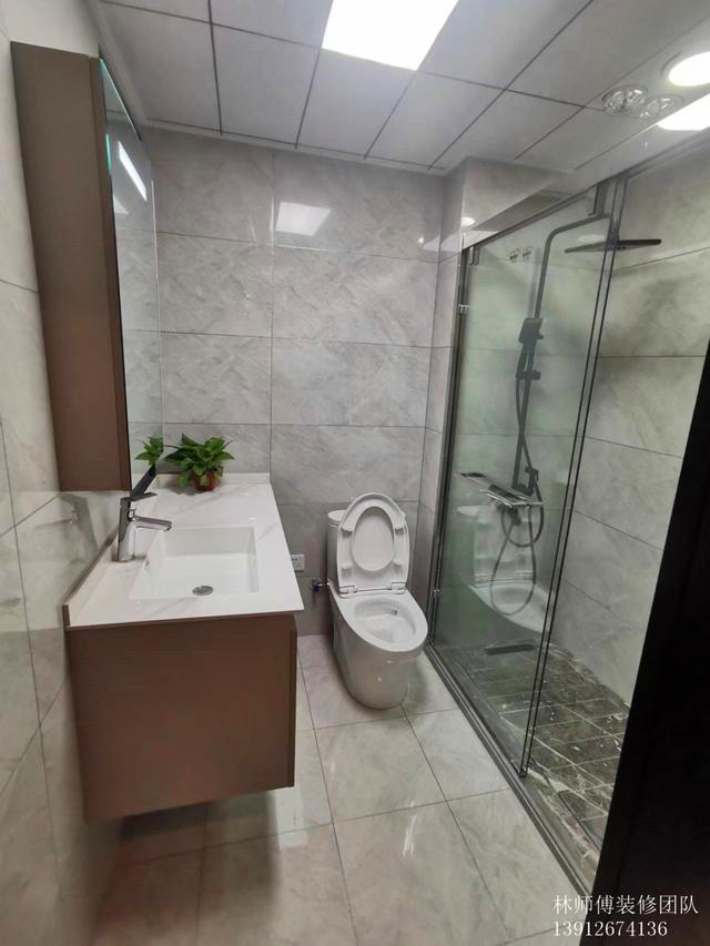 洗手间用了灰色的砖,更耐脏,干湿分离,方便打扫。镜面柜也是收纳的一大能手。整个卫生间看起来也是非常干净清爽的。