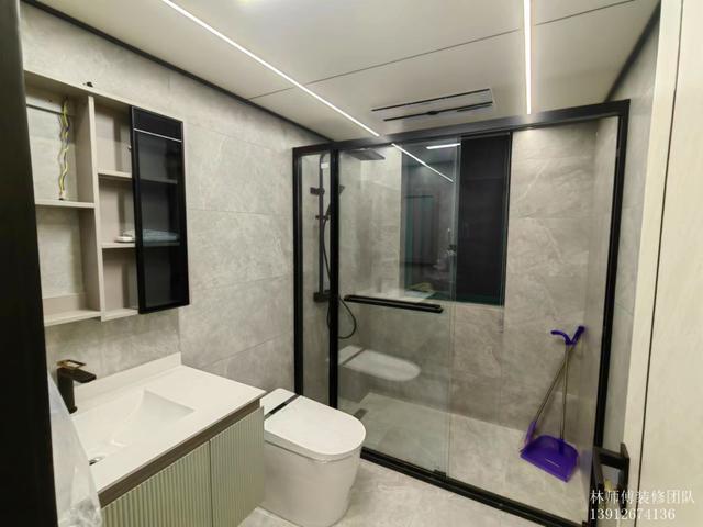 卫生间干湿分离,更方便平时打扫,还有黑色窄边淋浴房、大阪吊顶加上点灯带等等,卫生间都时尚起来了呢。