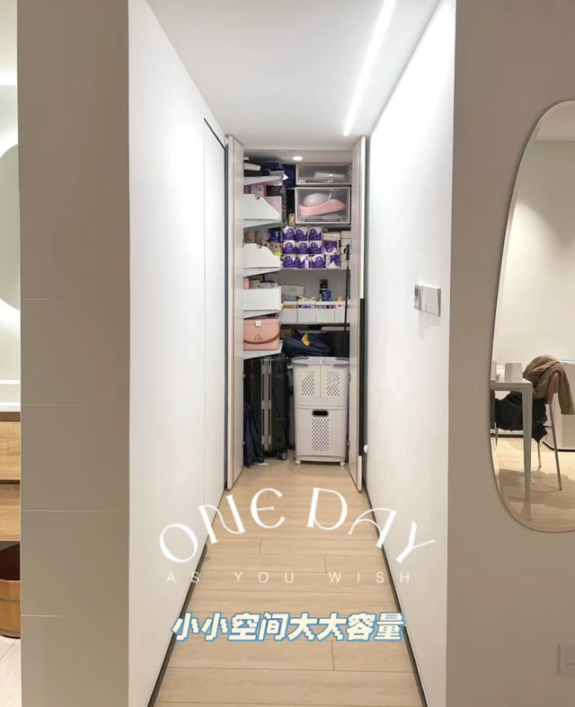 而且小户型容易受户型限制,很多地方无法实现定制,比如狭窄的玄关、面积很小的次卧。这种情况下,储物间就更显灵活,挑一个角落,哪怕不到1㎡都能实现储物自由。