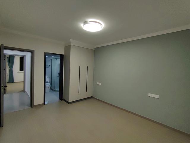 次卧也是,简约舒适的设计,灰色大衣柜结实又好用。