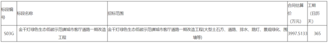 标段名称:金千灯绿色生态低碳示范镇城市客厅道路一期改造工程