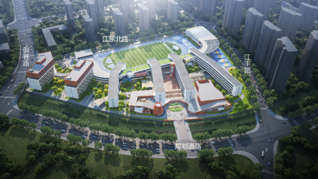 4、项目概述:用地面积46755.5平方米,总建筑面积52845平方米,其中地上建筑面积45800平方米,地下建筑面积7045平方米。规划办学规模为10轨30班(预留2轨)。
