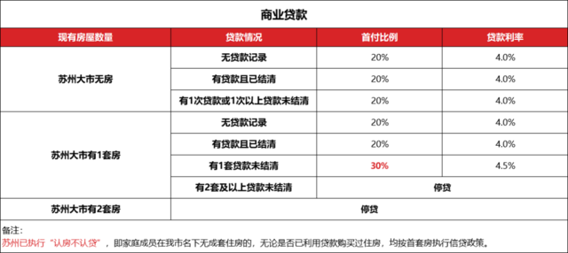 ②苏州无房但是其他城市有房贷:首付2成,利率4.0%;