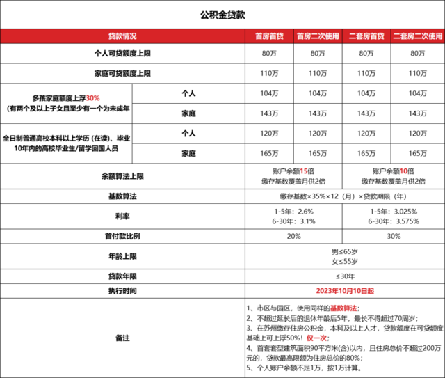 ④苏州支持异地公积金使用,按照余额算法来贷款。个人最高可贷80万,家庭最高可贷110万,见表格。