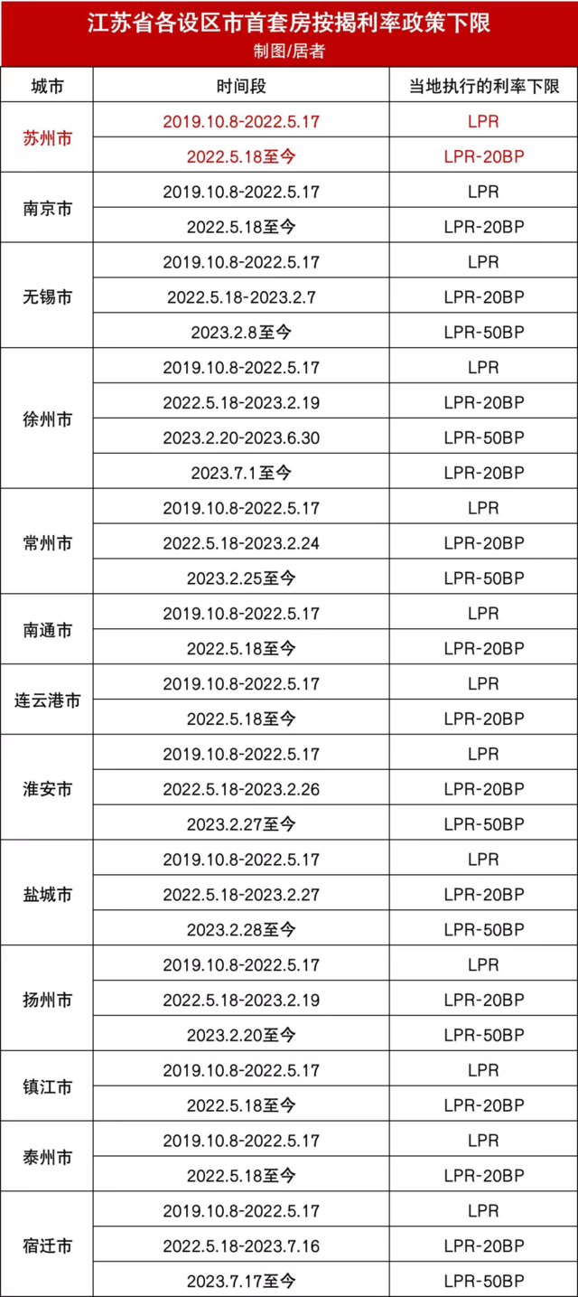 根据此中国人民银行江苏分行,公布的江苏省各设区市首套房按揭利率政策下限。