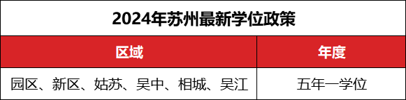 苏州目前六大区均执行“五年一学位”政策,其中园区在2023年12月20日发布学位新政,由“九年一学位”,调整为“五年一学位”,明确小学、初中分段计算,5年即可释放学位。