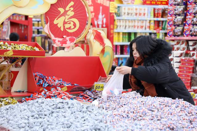 春节临近,昆山各大商场超市纷纷开设了年货集市,商品琳琅满目,年货品种齐备,货源充足,物价平稳,人们忙着选购红火的年货,喜迎新春佳节。