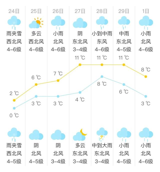 夜里阴有小雨夹雪