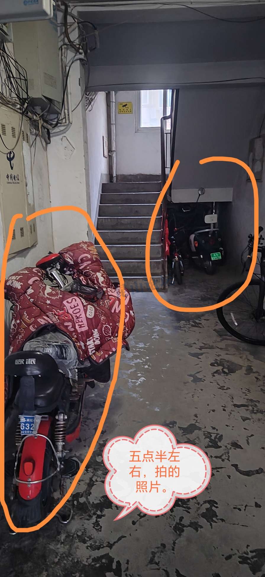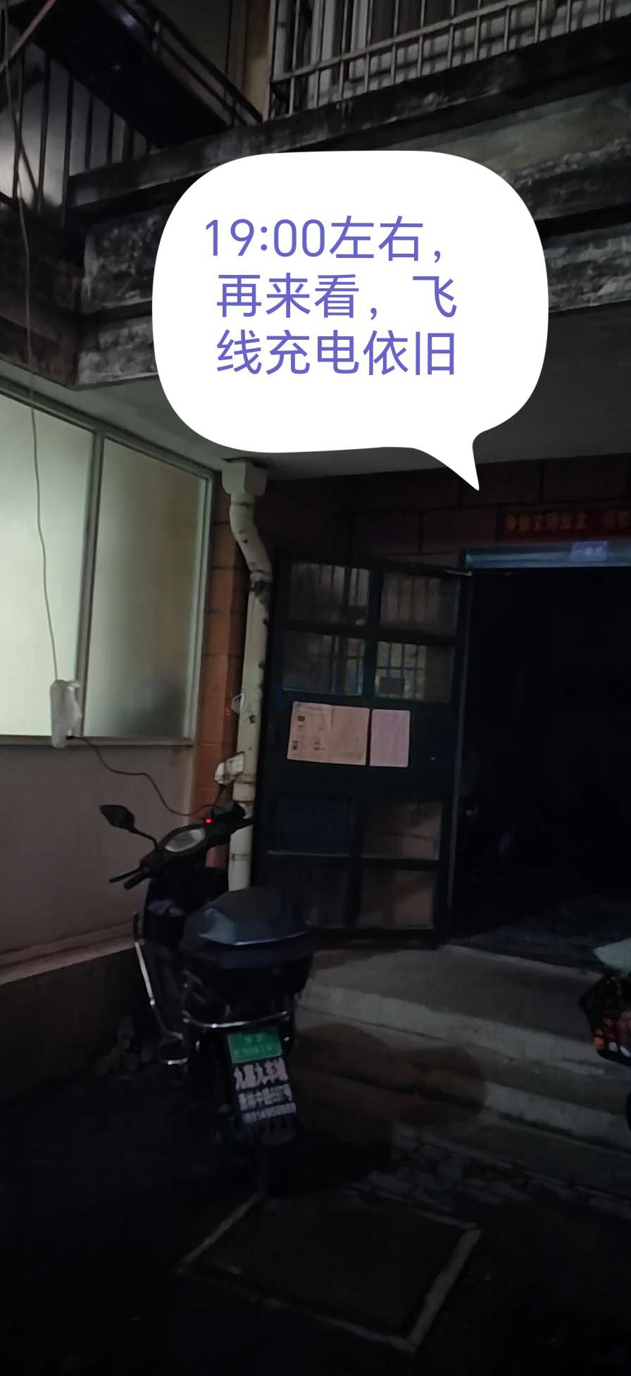 下午17:30左右的时候,针对附图中的情况,我联系了某小区物业,物业说马上处理。可是晚上19点的时候,我又去看了下,楼梯口的电瓶车没动,飞线充电的电动车,依然在充电。