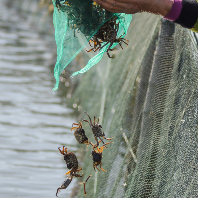 “去年5月8日投放大眼幼体到蟹种塘,今年2月份蟹种捕捞,分养到我们自己的成蟹塘。目前这个气温,池塘放养水位需要适当提升,为蟹种保证合适的水温。”蟹农邹雪明说,蟹种放养时间基本集中在2月份,放养规格为40只/斤左右,放养密度约1000只/亩。