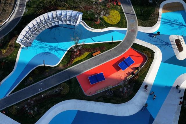 12-**岁*年龄段活动区域以篮球场、乒乓球场为主,增加了更多“对抗性”场地,各种色彩交错碰撞,为公园注入更多青春热血的气息。