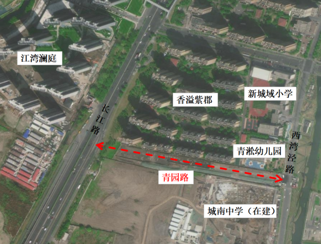 青园路新建工程位于昆山高新区青淞片区,项目于2023年3月开工建设。道路西起长江路、东至西湾泾路,全长约450米、宽约30米,设计为城市次干路,双向四车道沥青路面,是周边区域重要的东西向通道,在承担长江路交通转换的同时,服务两侧地块居民出行。