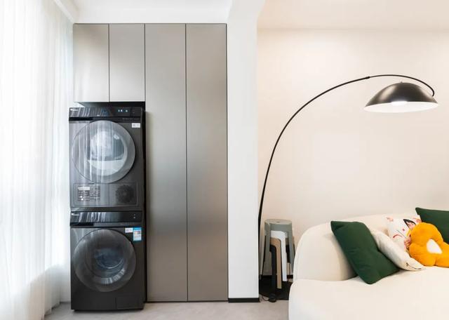 提前规划好水管电路,增加一个内嵌柜体放置洗衣机,这样在阳台洗完衣服后可以直接拿出来晾晒,减少晾衣动线,使用起来十分便捷。