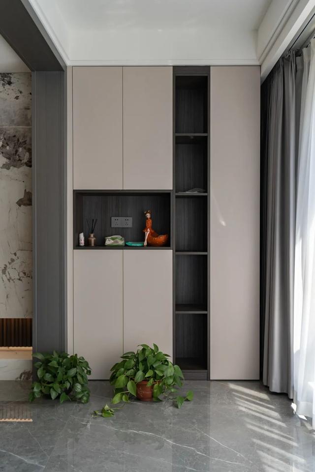 在阳台增加一个整墙式阳台收纳柜,给家居整体增加实用性,收纳能力堪比小型储物间。