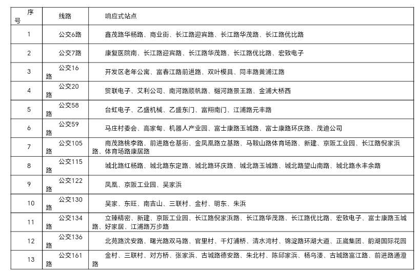 为提升公交运营效率,提升车辆周转,自2024年4月27日起部分公交线路部分站点调整为响应式停靠,涉及站点调整后在车内无乘客下车、站点无乘客候车的情形下减速通过,无需停靠开关门。具体如下: