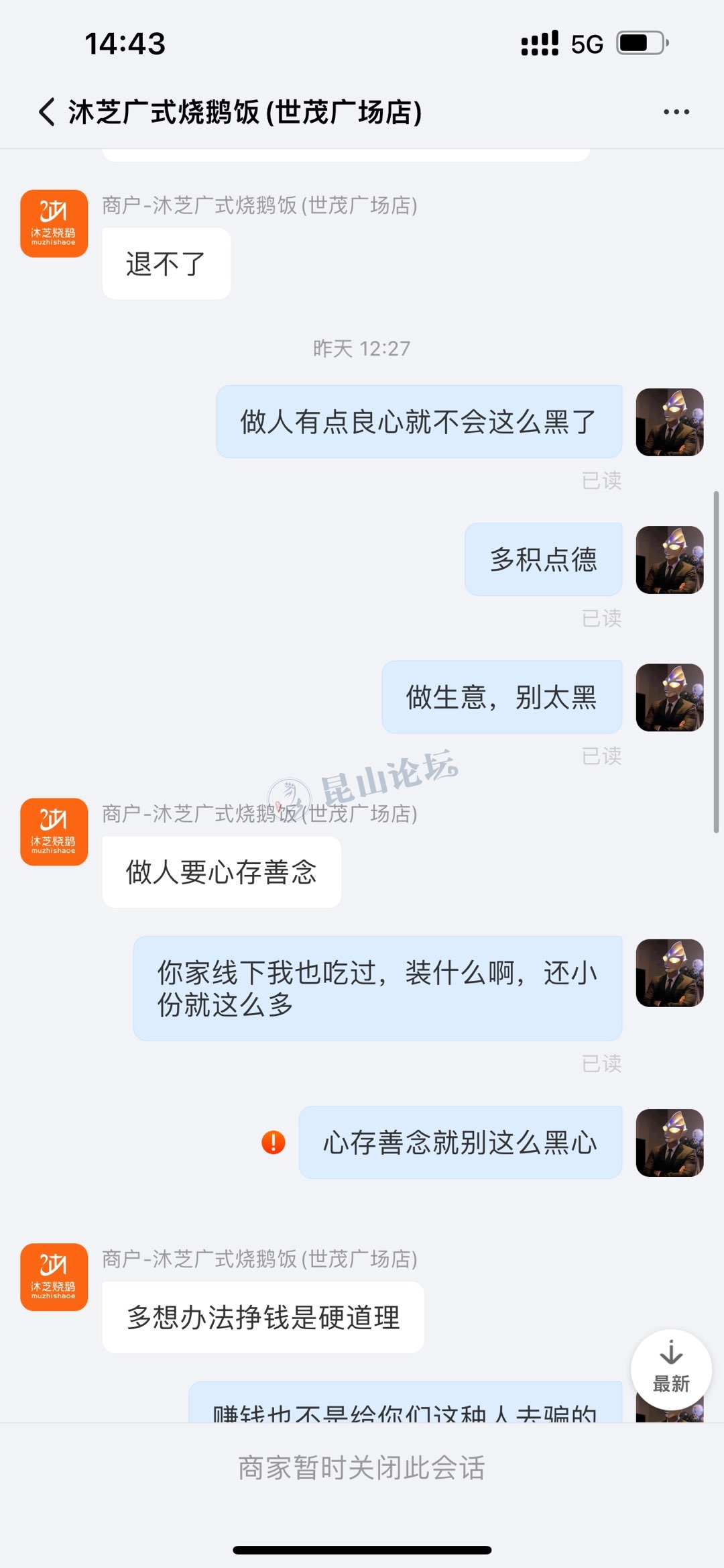 昆山城东世茂沐芝烧鹅素质极差,反应问题不好好解决