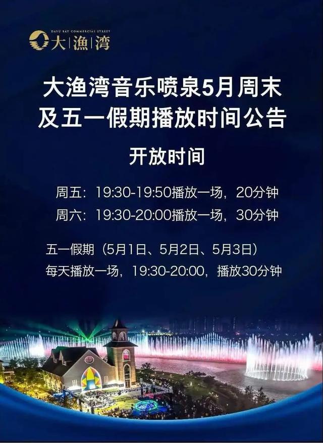 如遇雨雪、大风等音乐喷泉不宜开放天气,音乐喷泉将暂停开放,相关信息将在本平台提前公告。音乐喷泉启动时间可能会因广场客流预警情况进行微调。