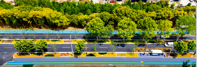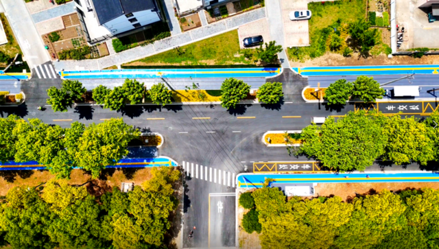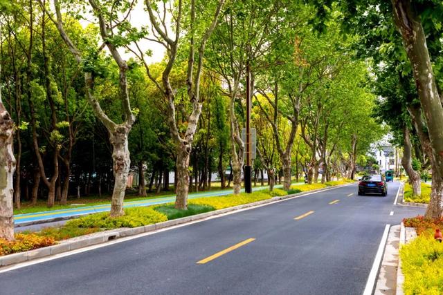 道路采用双向两车道三幅路断面布置,两侧增设独立非机动车道及人行道,同时增加渠化机动车行车道,全线新建雨、污水管道,并通过丰富景观植物与功能空间相结合,打造特色节点,给人一种“转角遇见美好”的舒适体验感,其中,改造绿化约3500平方米,建设休闲步道约2.5公里。